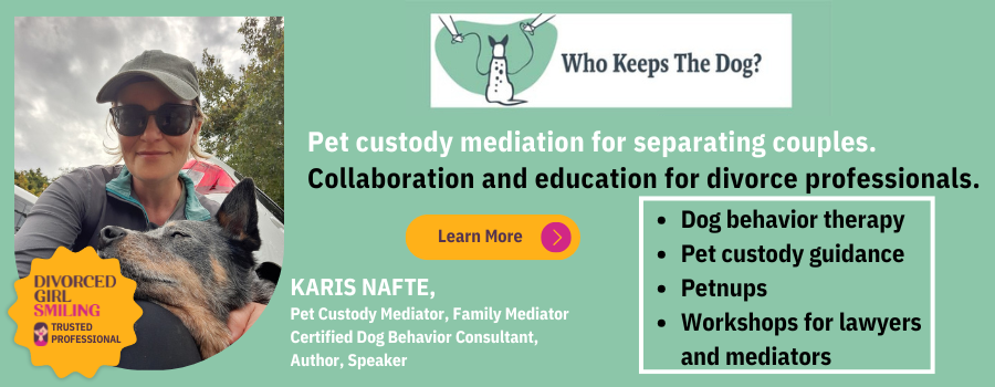 Pet Custody Mediator, Family Mediator, Certified Dog Behavior Consultant, Speaker, Author, founder, Who Keeps the Dog?