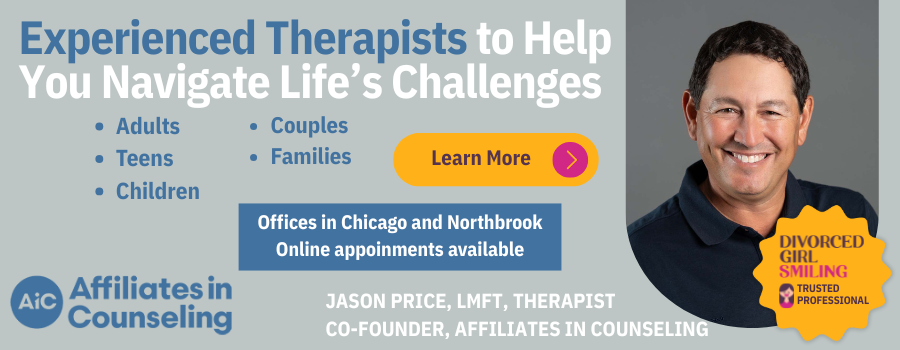 Affiliates in Counseling/The Center for Divorce Recovery has offices in Chicago and Northbrook. To learn more or to contact Jason, or to set up an appointment with one of the therapists, visit the website, or call: (847) 480-0300.